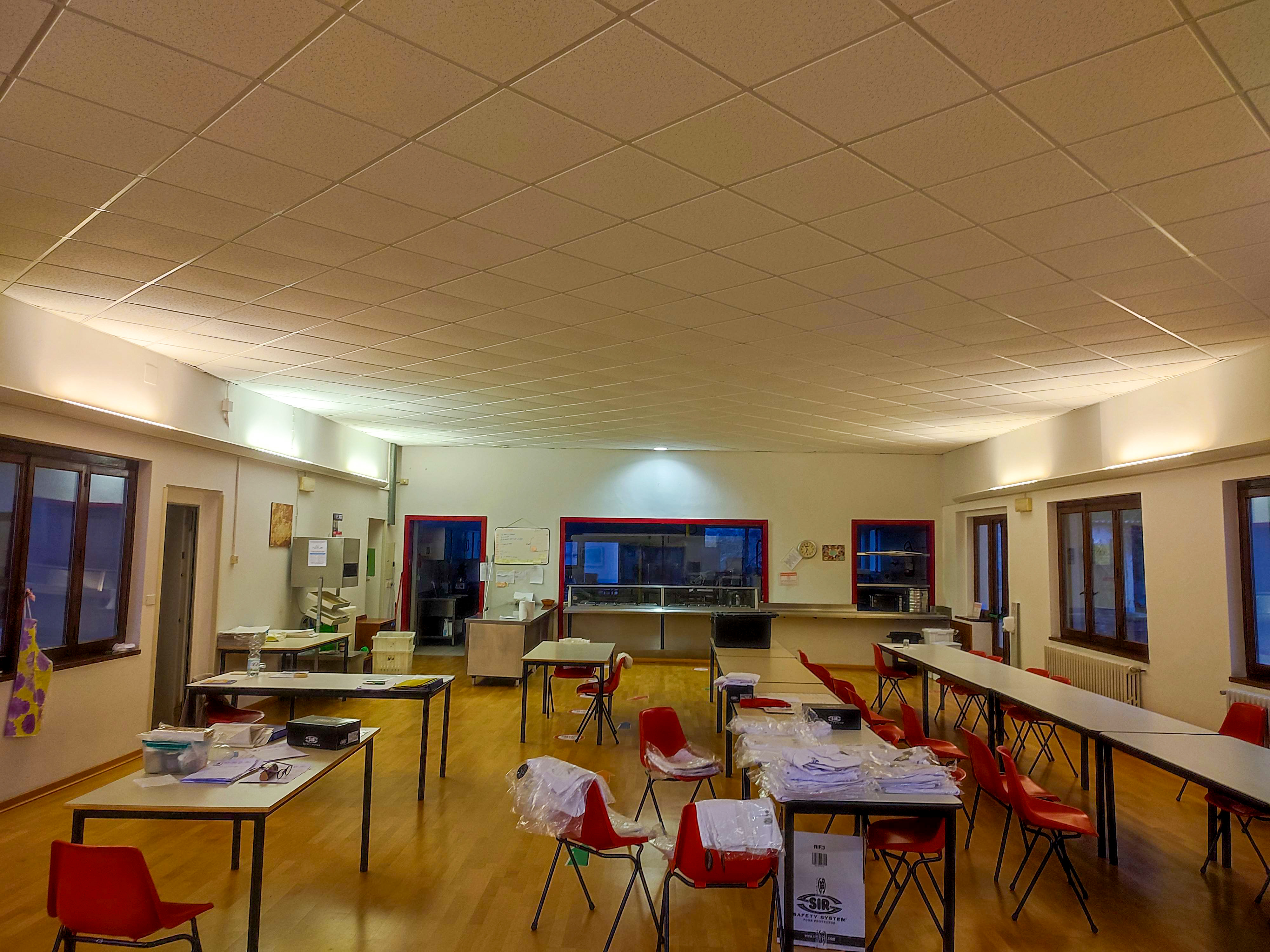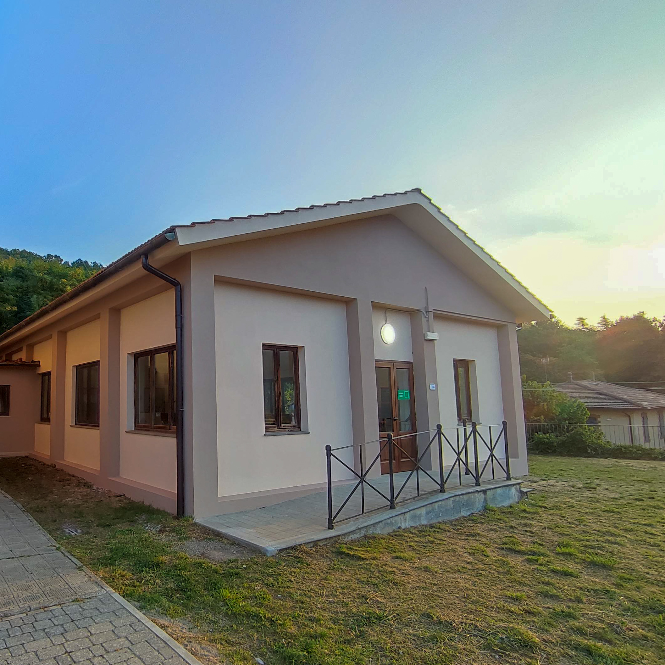 I lavori di riqualificazione della struttura, programmati a seguito della scelta di riattivare i locali mensa comunali, hanno visto la sistemazione di nuovi spazi di servizio interni, lavori di stuccatura e imbiancatura interna, la sistemazione delle pareti intonacate esterne e la conseguente completa imbiancatura.