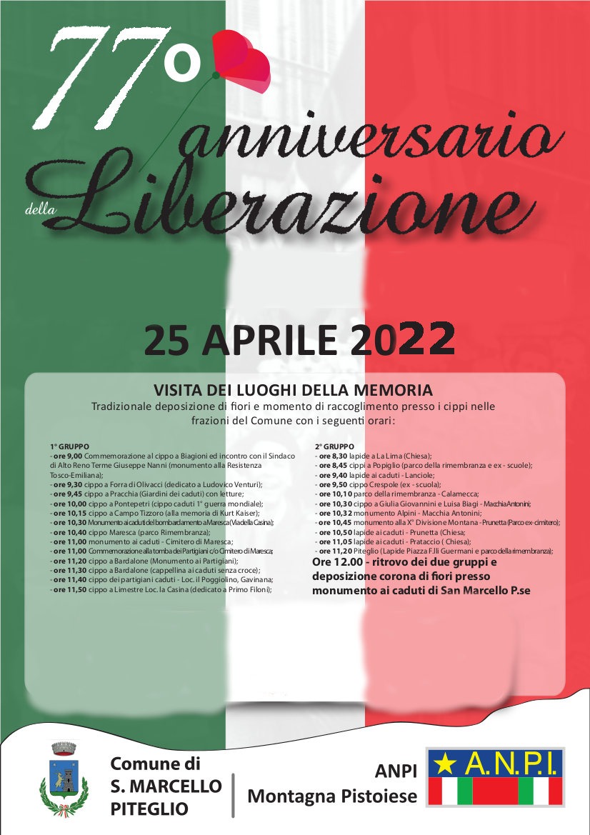 In allegato il programma delle celebrazioni del 25 Aprile 2022