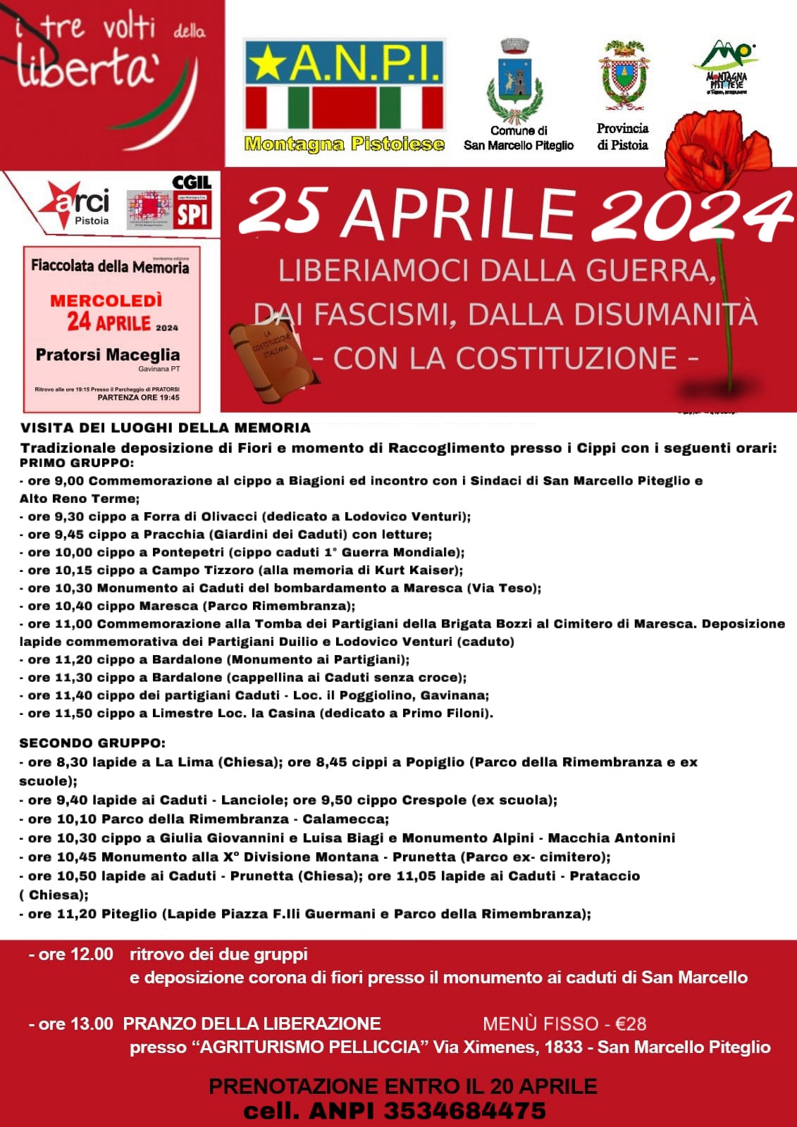 In allegato i volantini degli eventi delle Celebrazioni in occasione del 25 Aprile 2024.