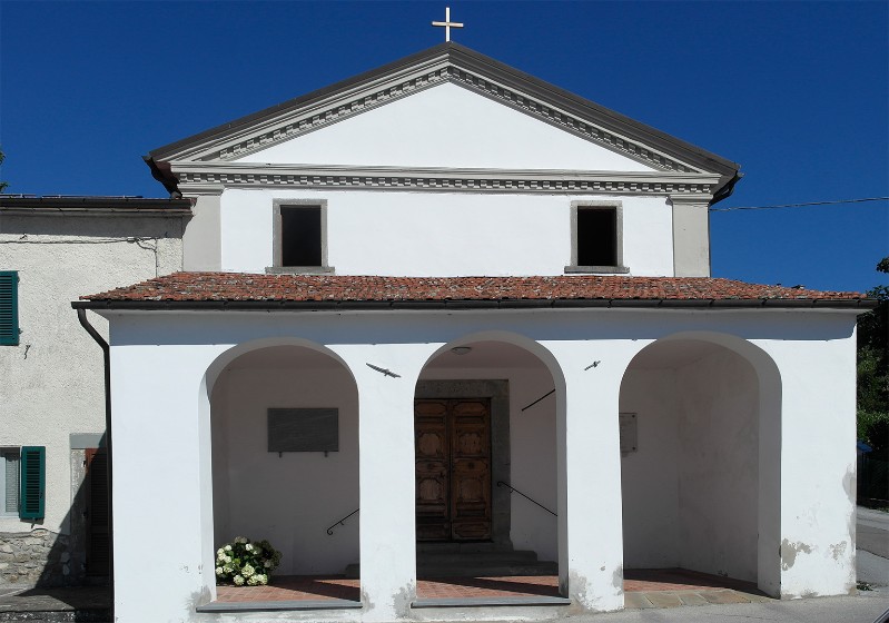 L'interno della chiesa si presenta a navata unica terminante con abside semicircolare. La copertura dell'aula è a volta impostata su paraste, suddivisa in sei campate. La zona presbiteriale, molto ampia, ospita i due altari laterali e quello maggiore ed è separata dall'aula da una balaustra in pietra. All'esterno, la facciata è composta da un piccolo portico con tre arcate dentro il quale si apre il piccolo portale d'ingresso incorniciato da piattabanda in pietra; al di sopra si aprono due piccole finestre rettangolari; il coronamento è a timpano con cornice a dentelli.