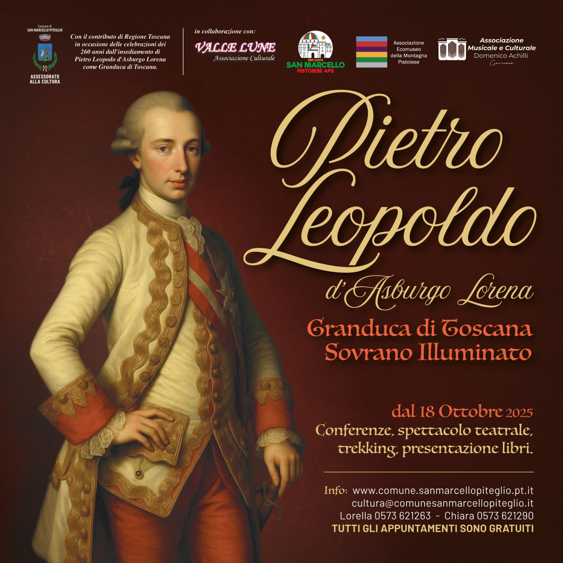 Eventi nel Comune di San Marcello Piteglio in occasione delle celebrazioni dei 260 anni dall’insediamento di Pietro Leopoldo d’Asburgo Lorena come Granduca di Toscana.